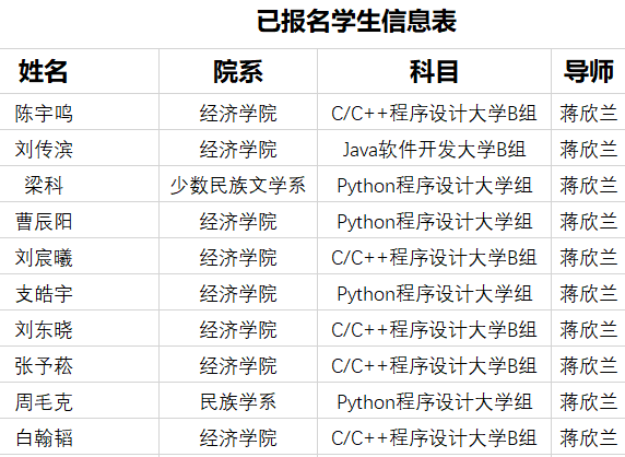 我们学校共有10位同学参加此次蓝桥杯比赛,祝同学们取得佳绩。