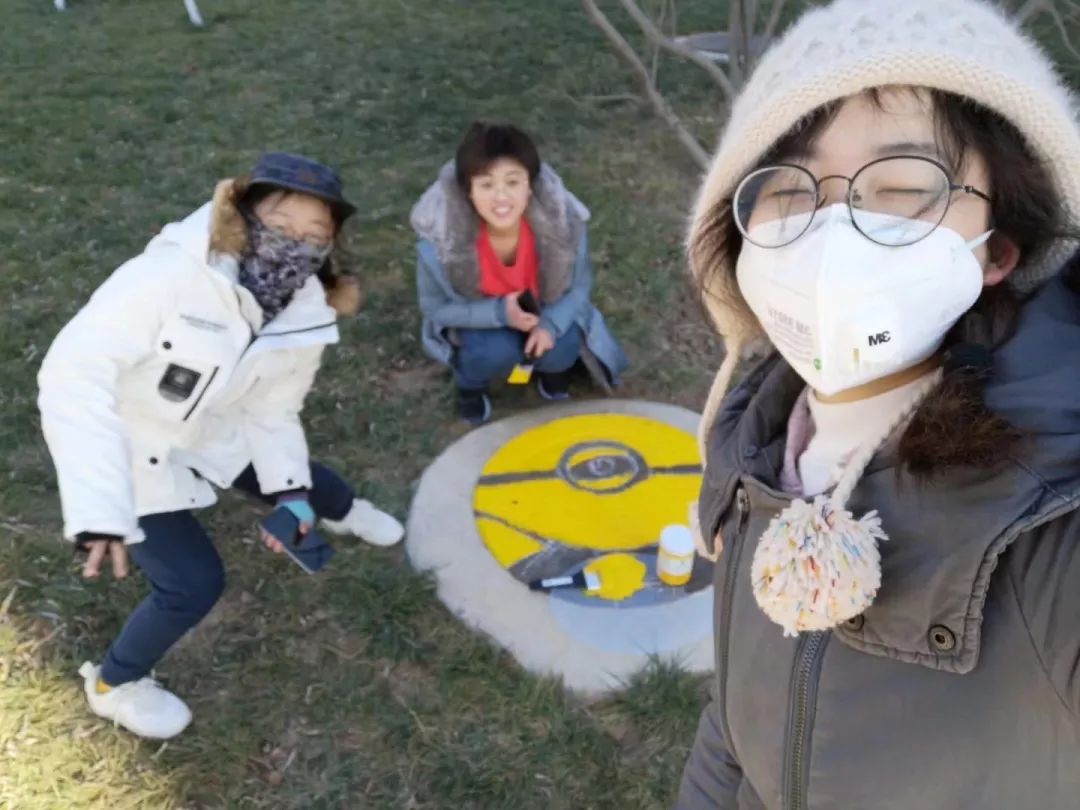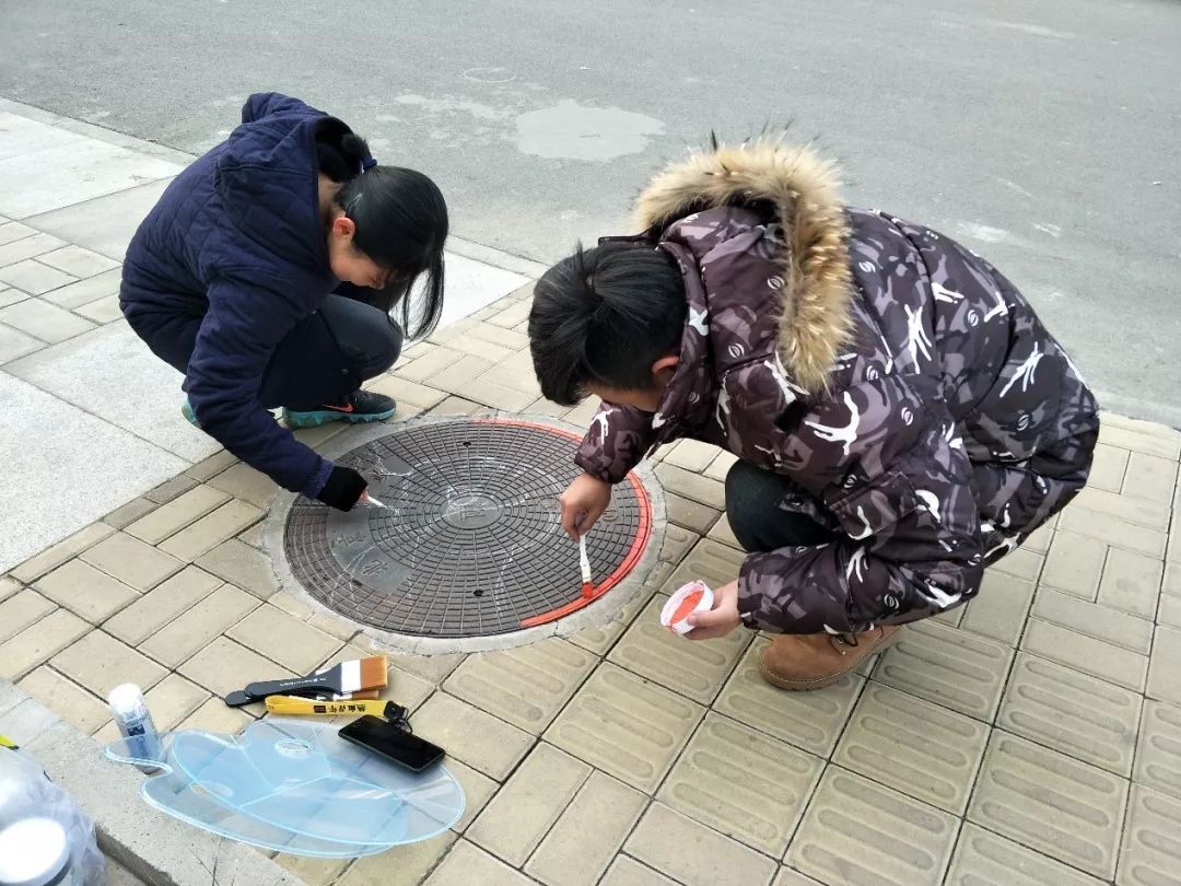 在冬月的大良乡,画手们用爱发热,完成了社科大内九处井盖的绘制;